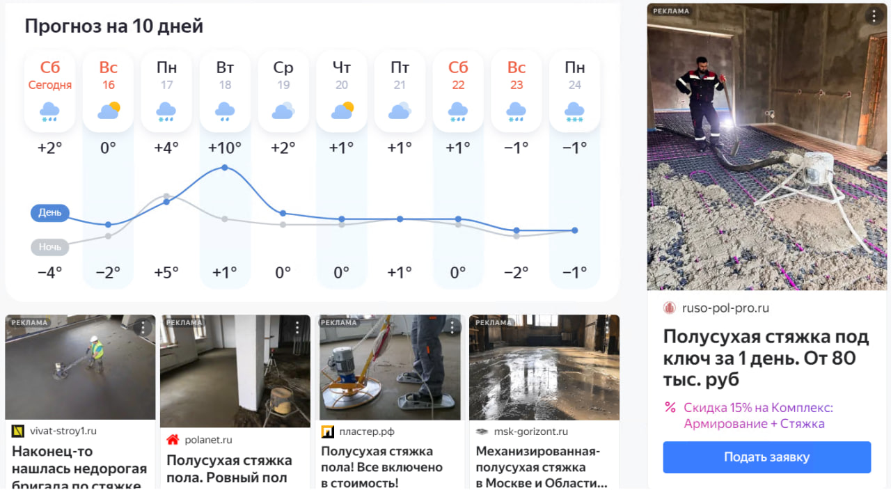 Я работаю с Я.Директ с 2019 года и знаю, как настроить рекламу только на «нужных людей». На тех, кто прямо сейчас ищет кто сделает им механизированную стяжку.