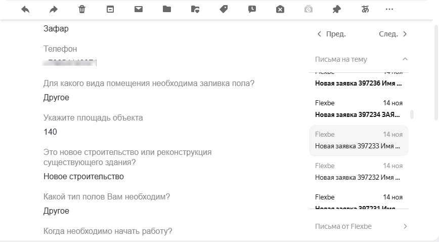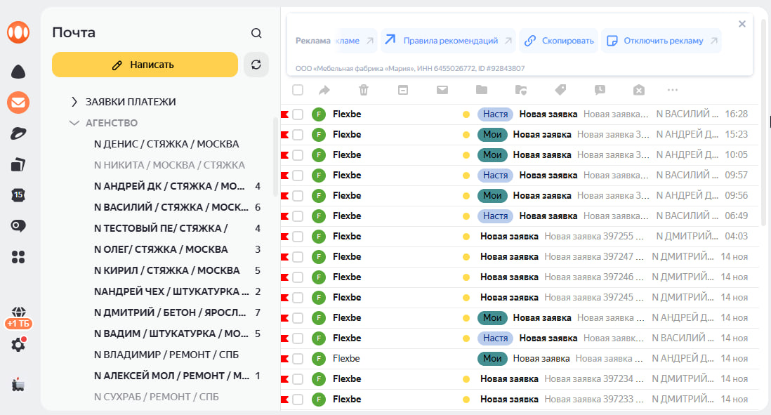 Заявки поступают на почту каждый день